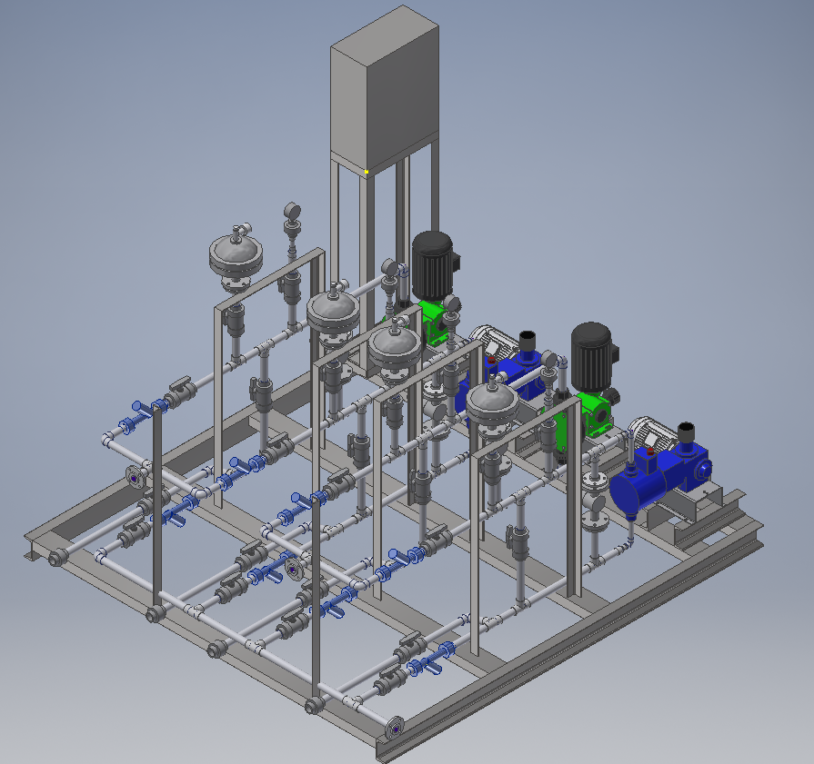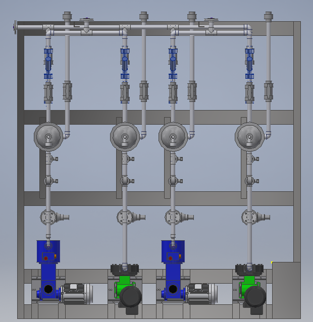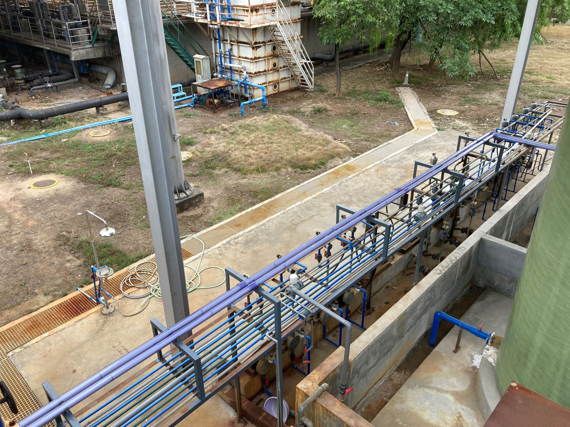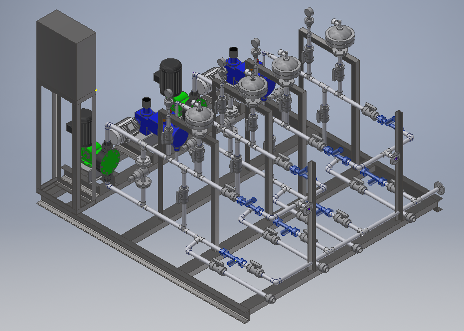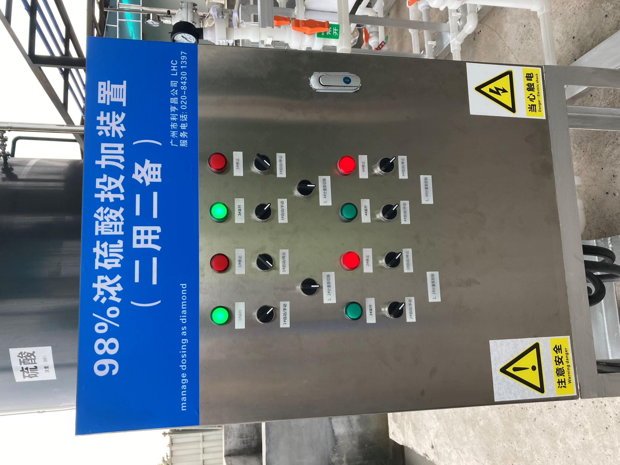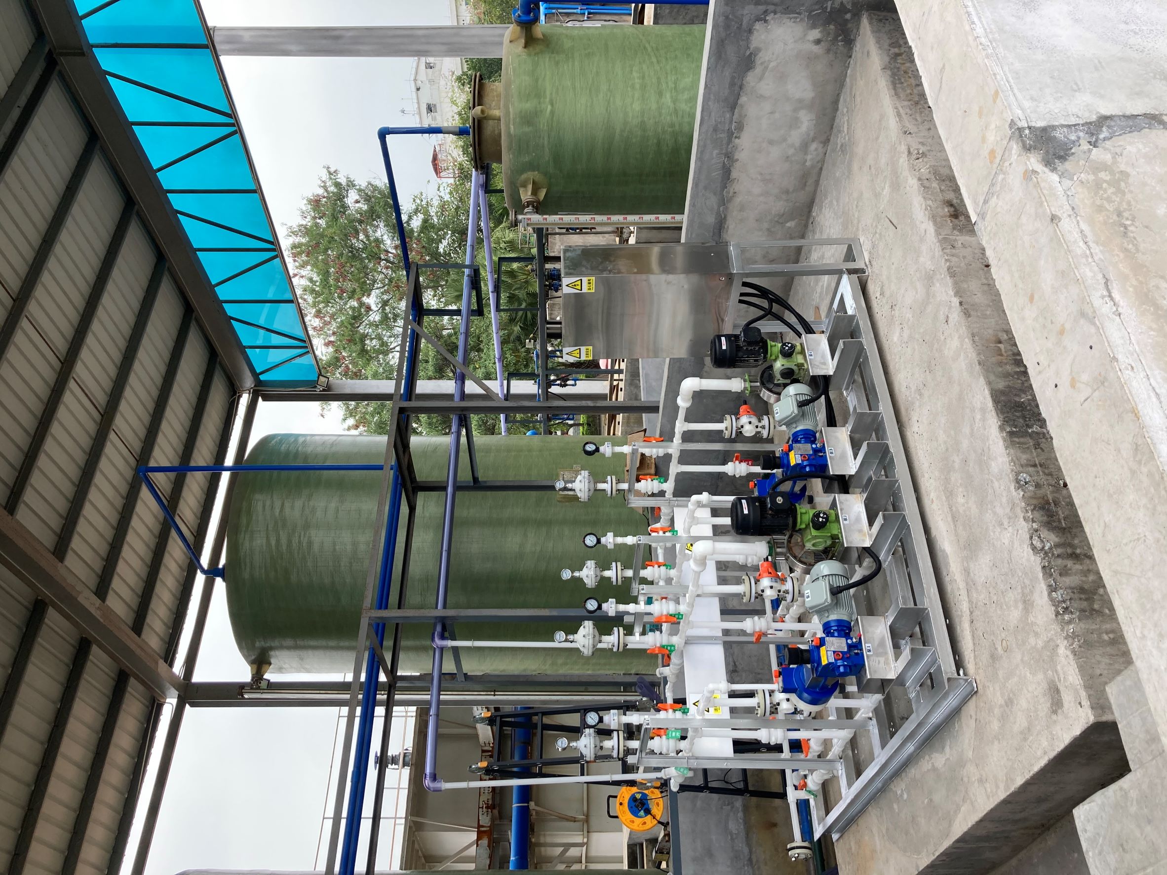 98%浓硫酸加药装置 PVDF材质过液端管道系统 双层化学品管道,内层PVDF材质过液,外层透明PVC材质防漏及检查。 Bran Luebbe液压隔膜计量泵 Pulsafeeder机械隔膜计量泵