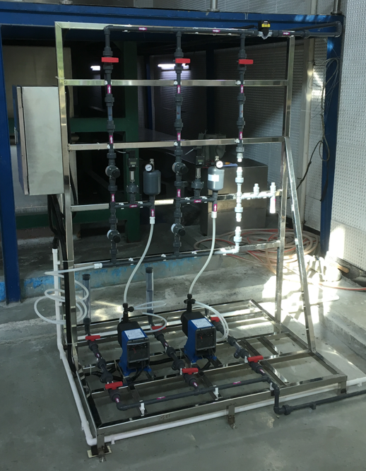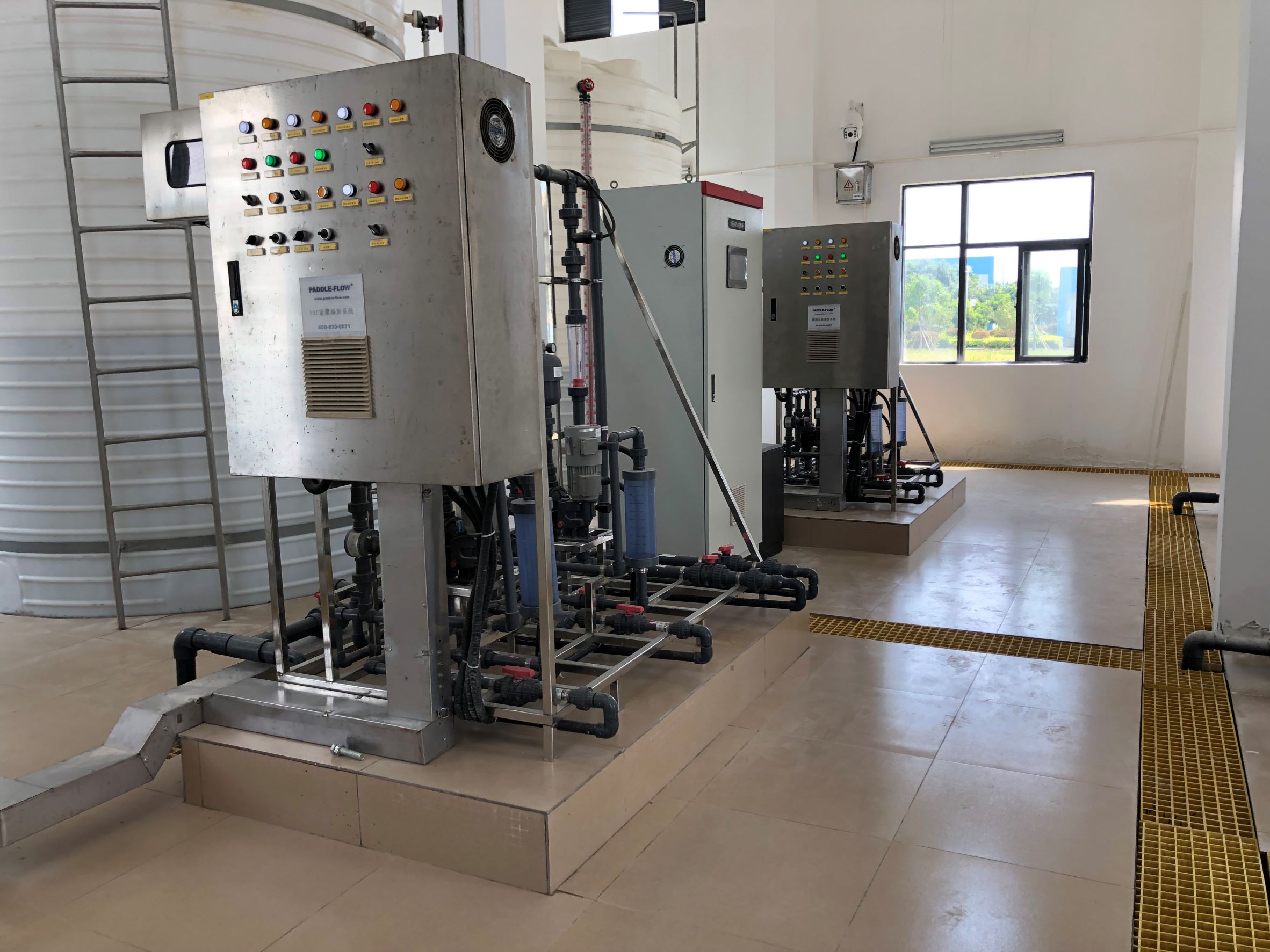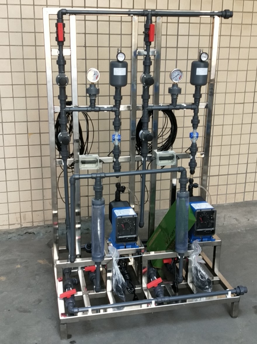 装置使用米顿罗计量泵,带流量监控,通过全自动方式控制整套系统运行。