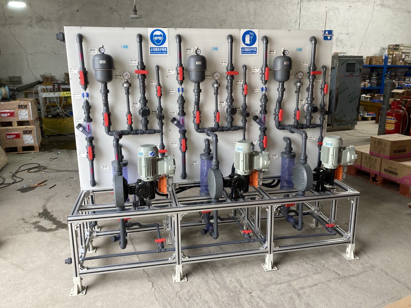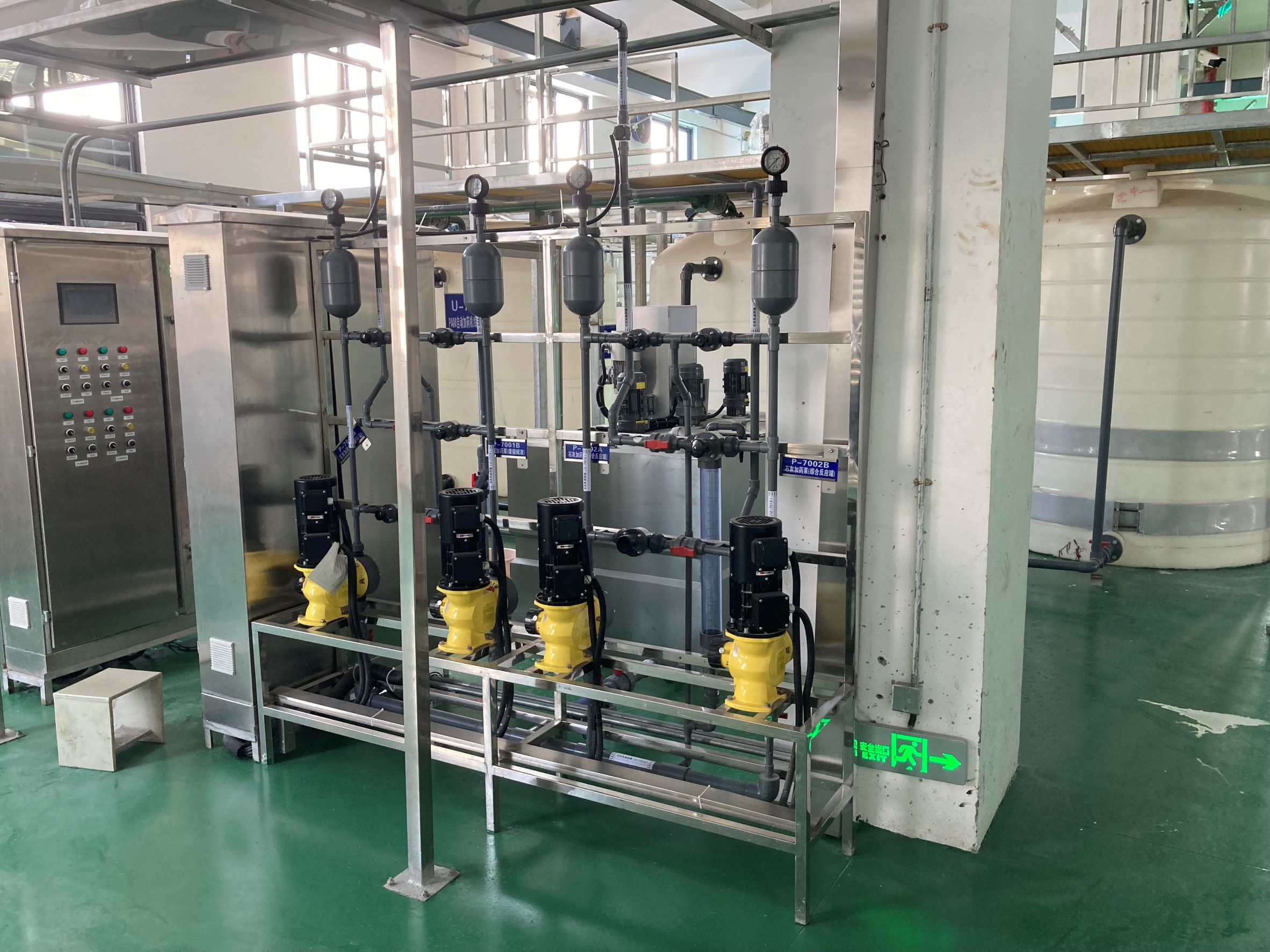 化学品均使用电磁计量泵投加,根据pH等系统参数调整投加流量。