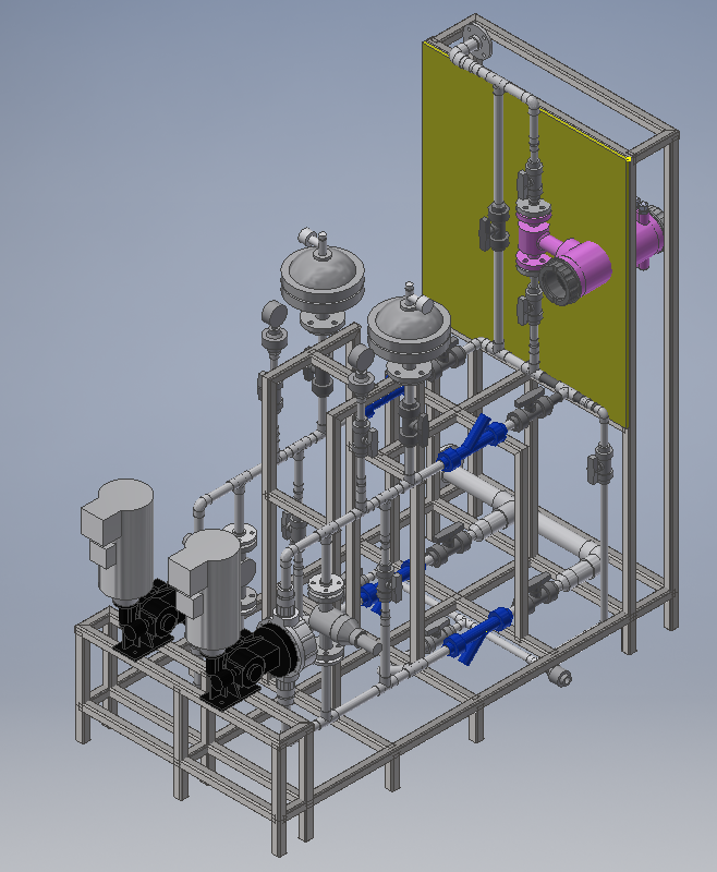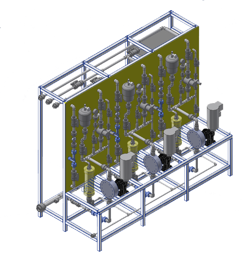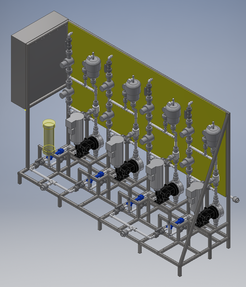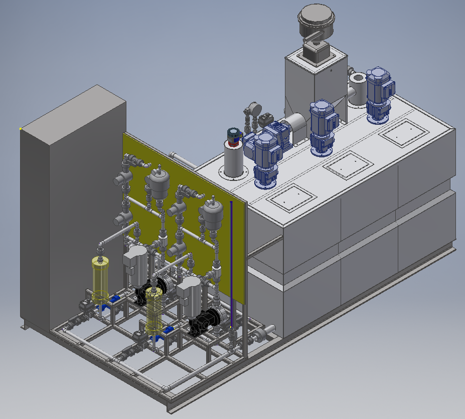 项目内容为广州机械研究所的一套垃圾渗滤液处理装置中的加药装置。加药装置在垃圾渗滤液处理系统中,负责向待处理渗滤液投加处理用的化学品。